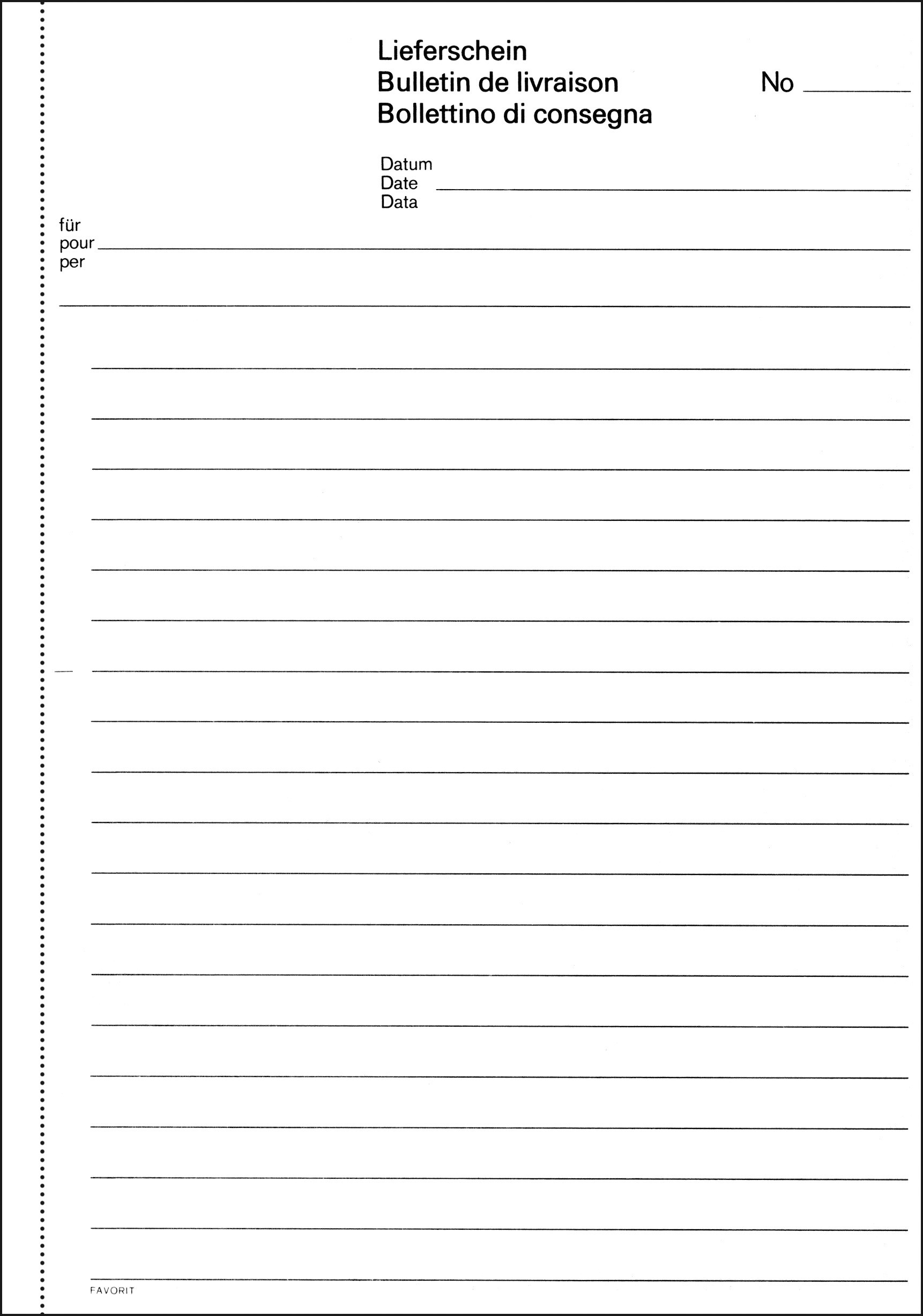 Der selbstdurchschreibende Lieferschein von FAVORIT ist das passende Formular, um Lieferungen schnell und exakt zu dokumentieren inklusive Anzahl Doppel nach Wahl.