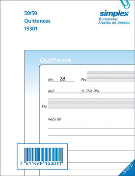 Die SIMPLEX Quittungen bestehen aus hellblauen Seiten sowie weissen Kopien.