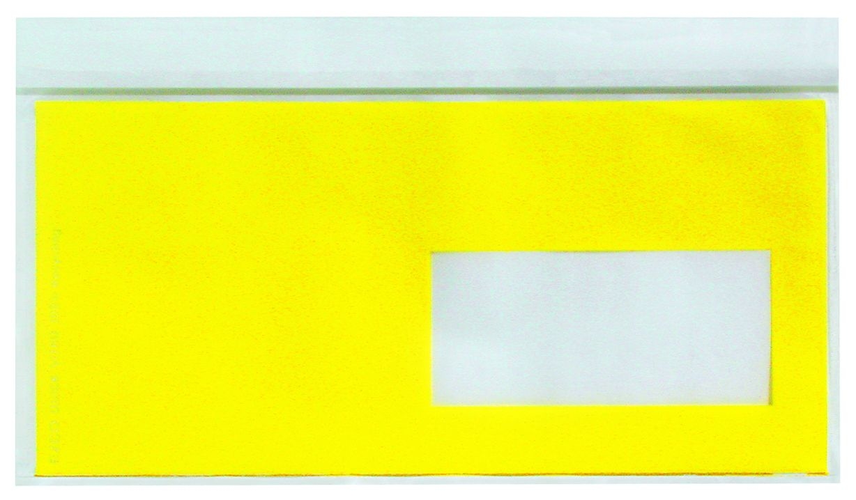 Dokumententaschen, Kunststoff, Rückseite selbstklebend, zum Aufkleben auf Karton-Versandboxen.