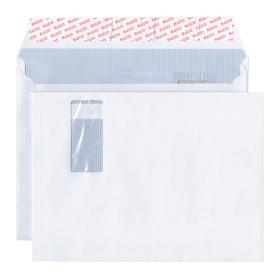 Documento C4 plus-Kuvert mit der 20 mm Seitenfalte von ELCO mit Fenster rechts und mit Haftklebeverschluss in der 200 Stk.-Box. Das FSC-Couvert für anspruchsvolle Briefschaften. Der charakteristische, blaugraue Innendruck "ELCO documento" verhindert die Durchsicht.