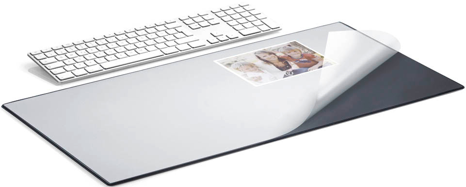 Die Computerarbeitsplätze bieten sich geradezu an für eine neue Dimension von Schreibunterlagen. Das ComputerPad Cover im Format 65 x 34 cm nimmt den Platz vor dem Bildschirm optimal ein. Fotos, Visitenkarten oder Notizen können unter der transparenten Vollsichtplatte gelegt und aufbewahrt werden. Umweltfreundliche Schreibunterlage aus neu entwickeltem Polypropylen, 100% phthalatfrei "ohne Weichmacher". Die angenehme und geschmeidige Oberfläche garantiert einen hohen Schreibkomfort. Die abgerundeten Ecken und feiner Ziernaht verleihen der Schreibunterlage einen eleganten Look. Rutschfester Rücken. Vorder- und Rückseite sind abwaschbar.