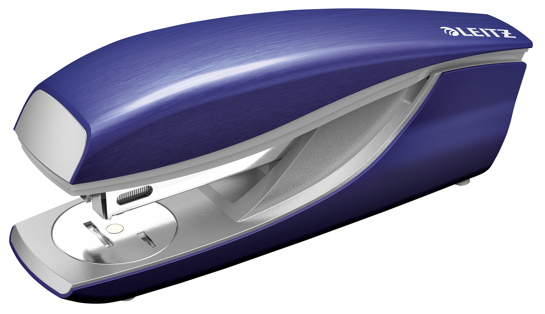 Auffallendes Metallheftgerät für den täglichen Gebrauch. Modernes, gebürstetes Oberflächendesign und stylische Farben. Stabil und zuverlässig. Die patentierte Direct Impact Technology und Leitz Power Performance Heftklammern P3 (24/6, 26/6) garantieren im