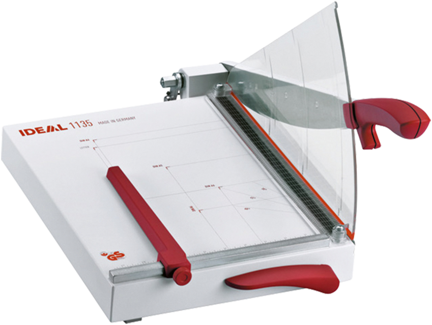 Der Hebelschneider 1135 ist eine stabile Ganzmetall-Konstruktion mit transparentem Messerschutz und integriertem Schnittandeuter. Die nachschleifbare Messergarnitur aus "Solinger Messerstahl" und der stabile Messerwinkel aus Aluminiumguss garantieren Ihnen höchste Präzision.