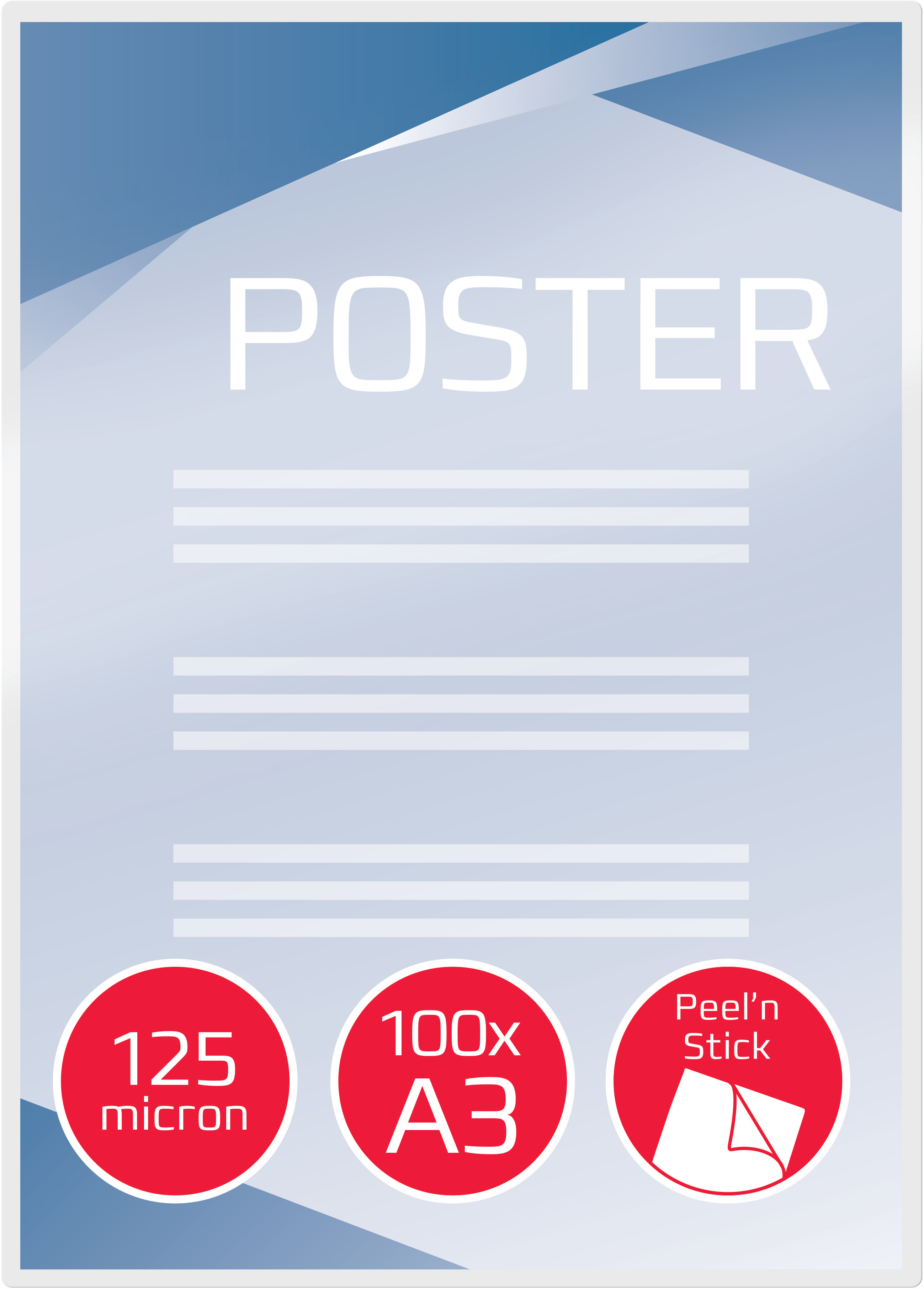 GBC Peel n’ Stick Laminiertaschen sind perfekt geeignet um schnell und einfach professionelle Schilder zu erstellen. Die selbstklebende Rückseite haftet auf den meisten Oberflächen wie z.B. Glas, Metall und Karton. Einfach die Folie vom Trägerpapier abzie