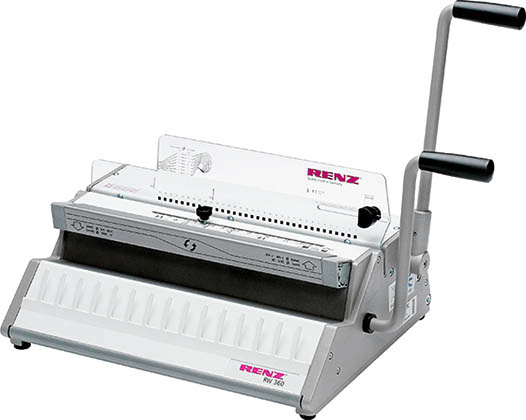 Stanz- und Bindesysteme für RENZ RING WIRE Drahtkammbindung in 3:1 Teilung. Bestens geeignet für die mühelose Blockherstellung von kleinen bis mittleren Auflagen.