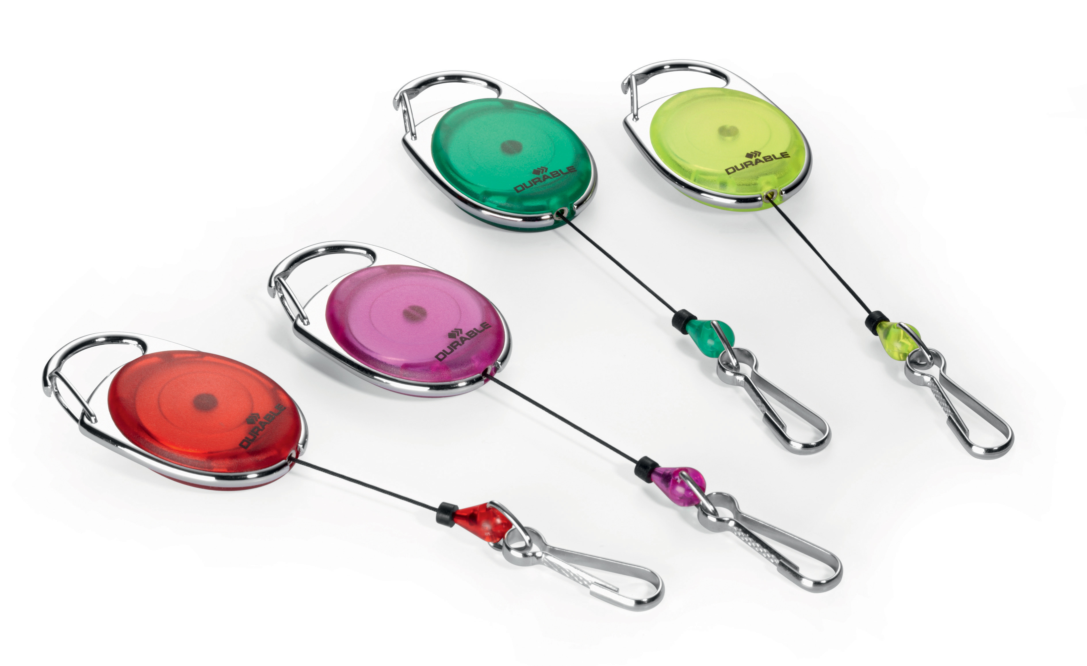 Ovales Jojo in ansprechendem Design, mit Metallclip-Befestigung und Federhaken zur einfachen Kombination an allen Namensschildern oder Sicherheitsausweishaltern, die über eine Clip-Ausstanzung oder Nadel verfügen, Länge: 80 cm.