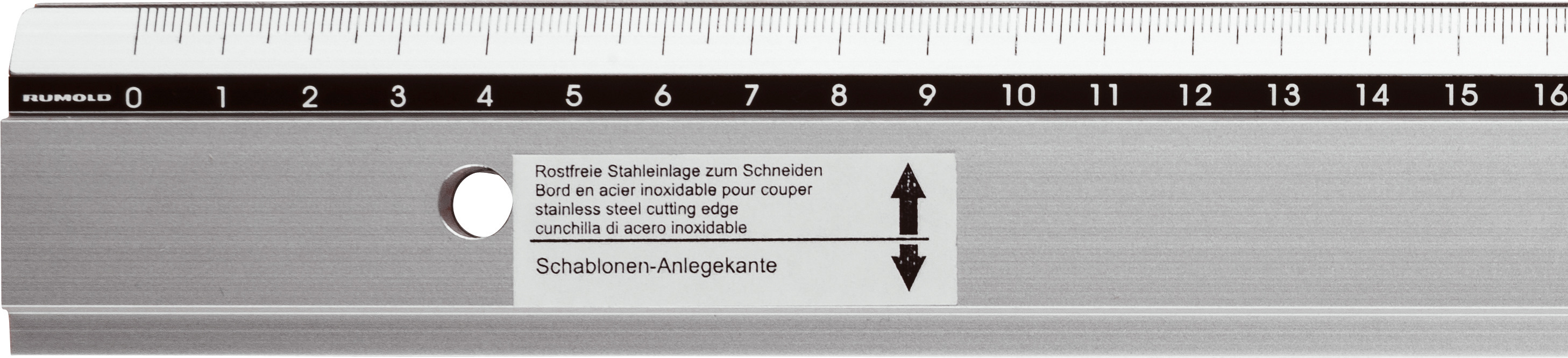 Präzisions-Zeichen- und Schneidelineal aus eloxiertem Aluminium für höchste Ansprüche, augenschonende weisse Bezifferung auf schwarzem Band, Präzisions-mm-Teilung auf Alu-Facette, Aufhängeloch, rutschfest, Sonderstärke 9 mm. Ideale Anlegefläche für Zeichen