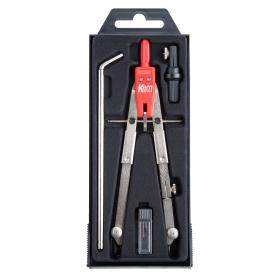 Preisgünstiger Schnellverstelzirkel von Kern, für Schule oder Studium. Mit einer Basislänge von 170 mm, inklusive zwei Ersatbleiminen und einer Ersatznadel.
