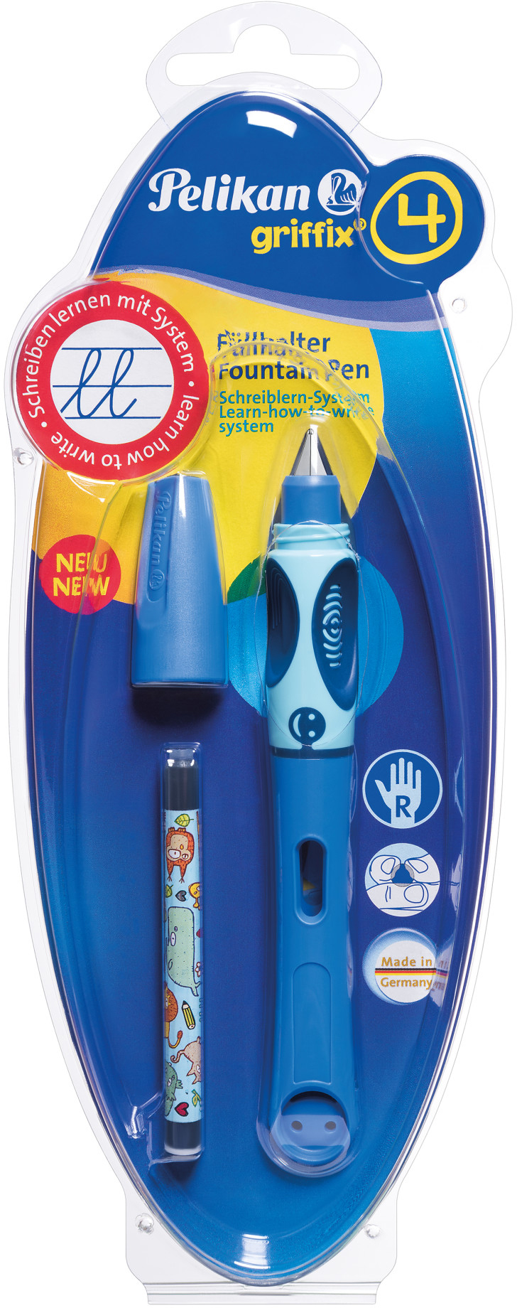 Der Füllhalter ist die vierte Stufe des vierstufigen Griffix Schreiblern- Systems - die Königsklasse beim Schreibenlernen. Damit lernen die Kinder das formgerechte Schreiben und optimieren die flüssigen Schreibbewegungen. Die Feder gleitet dabei leicht über das Papier und hinterlässt ein schönes Schriftbild. Dank des einheitlichen Griffmulden-Konzepts der einzelnen Schreibgeräte muss das Kind die Handhaltung von Stufe zu Stufe nicht mehr ändern. Ein Umgreifen zwischen den einzelnen Lernstufen ist also nicht nötig. Griffix unterstützt die Kinderhand damit optimal im gesamten Schreiblernprozess - von Anfang an.