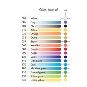 Wasserfarbe mit natürlichem Bindemittel, ohne Weichmacher, wasserlöslich. Hohe Pigmentkonzentration, leuchtende Farben, gute Lichtbeständigkeit, sparsam im Verbrauch.