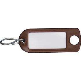 Die simplen Plastik-Schlüsselanhänger sind beschriftbar und ausgestattet mit einem Aufhängeloch.