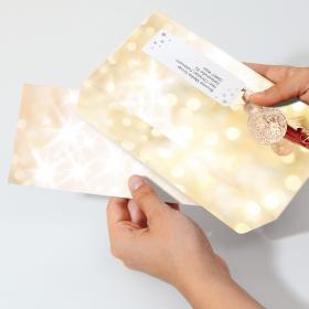 Das Weihnachtspapier mit verschiedenen Motiven lädt zum schreiben von Karten ein.
