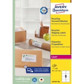Qualität vom Etiketten-Experten: die naturweissen Recycling Versand-Etiketten LR7165-100 für Laser-Drucker im Format 99,1 x 67,7 mm von Avery Zweckform eignen sich z.B. ideal für B4/C4 Kuverts oder für die Deutsche Post INTERNETMARKE. 800 Aufkleber auf 100 Bogen. Das Beste für die Umwelt: das Etiketten-Material der umweltfreundlichsten Etiketten von Avery Zweckform besteht zu 100% chlorfrei gebleichtem Altpapier. Der Klebstoff ist wasserbasiert und das Produkt ist ausgezeichnet mit dem Blauen Engel. Bei der Herstellung entstehen weniger Emissionen, die Produktionsabfälle werden komplett wiederverwertet. Das ist Nachhaltigkeit „Made in Germany“ und die erste Wahl für die Zukunft unserer Erde. Ideen drucken - einfach & professionell: mit Etiketten von Avery Zweckform können Sie den kostenlosen Online Etiketten-Designer unter www.avery.eu/print nutzen. Gestalten Sie Ihr Etikett mit der Software komplett selbst, verwenden Sie eine der Design-Vorlagen zu zahlreichen Themen, die Sie individuell anpassen können oder laden Sie Ihr fertiges Design hoch und drucken anschliessend standgenau aus. So schnell und einfach sorgen Sie für einen professionellen Auftritt. Think & Care - Avery Zweckform ist seit 2020 klimaneutral: die Treibhausgasemissionen des Standortes werden durch zertifizierte Klimaschutzprojekte ausgeglichen. Schon seit 2014 wird ausschliesslich Ökostrom/-gas verwendet. Forschung, Entwicklung, Produktion, Logistik und Verwaltung am Firmenstandort in Oberlaindern/Bayern garantieren höchste Qualitäts- und Umweltstandards sowie kurze Lieferwege.
