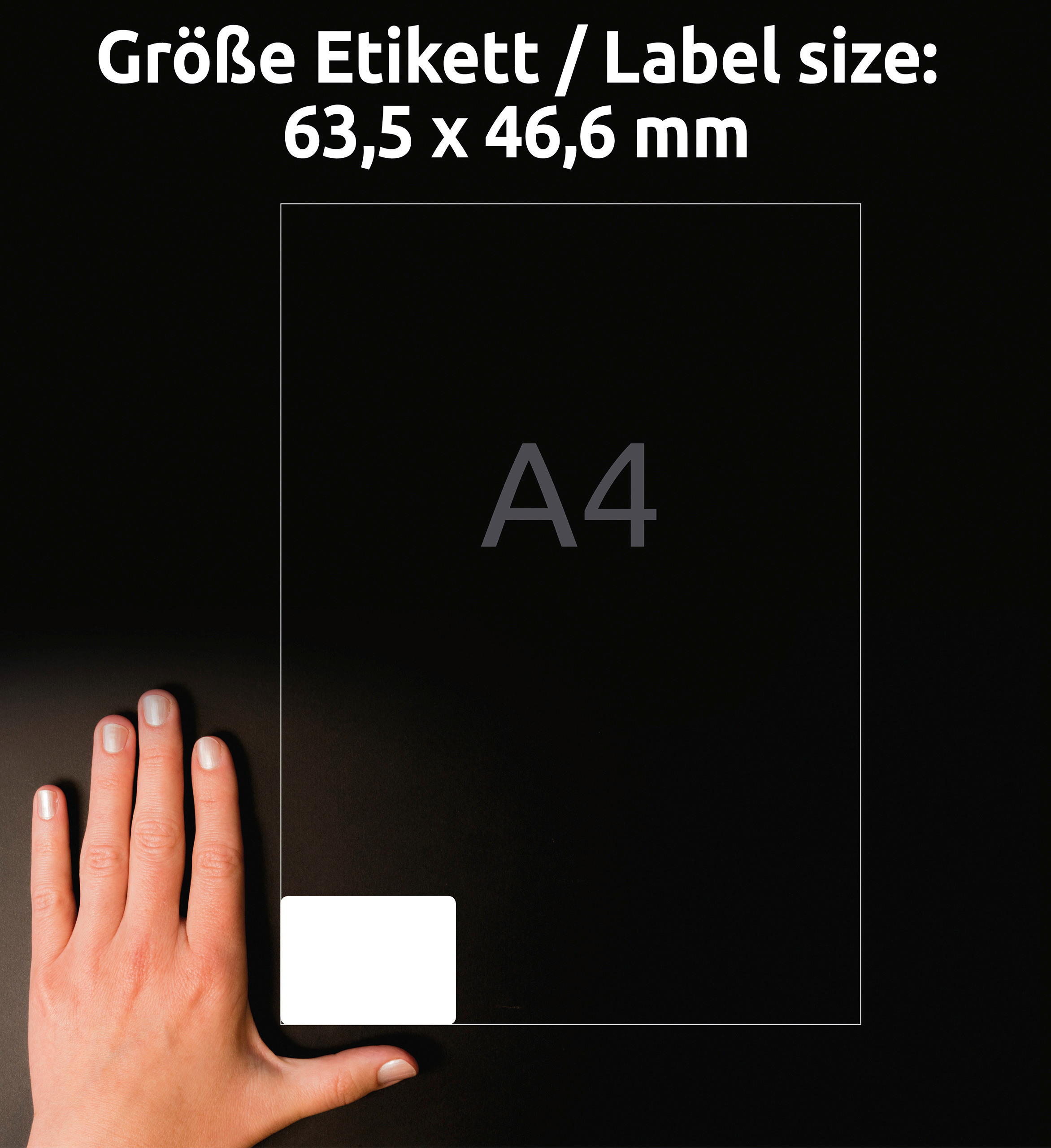 Die richtige und flexible Beschriftung ist gerade bei der Produktauszeichnung besonders wichtig. Unsere ablösbaren Universal-Etiketten von Avery Zweckform sind dazu perfekt: zuverlässig klebende Etiketten, die Sie bei Änderungen einfach und schnell wieder ablösen können! Ob Sie nun Produkte temporär auszeichnen oder Unterlagen und Dokumente beschriften möchten, oder einfach nur zu Hause Ihre Schränke neu ordnen wollen - mit den weissen, ablösbaren Etiketten im Format 63,5 x 46,6 mm liegen Sie genau richtig. Sie können sich dabei auf einen garantiert staufreien Druckerdurchlauf ohne Klebstoffablagerungen im Drucker verlassen. Die Etiketten sind für alle gängigen Laser- und Inkjet-Drucker geeignet, für Laser-Drucker wurde der problemlose Etikettendruck vom TÜV SÜD getestet und bestätigt.