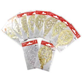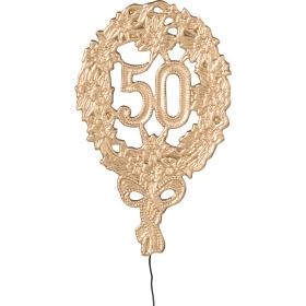 Die Jubiläumszahlen aus stabiler, formfester goldener Pappe wurden von Hand geprägt und gestanzt. An einem integrierten Draht können sie leicht befestigt werden. Ein edles Accessoire für Jubiläen und andere besondere Feierlichkeiten.