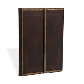 Das Paperblanks Notizbuch Schwarzes Marokko-Faux-Leder erfasst die Essenz der meisterhaften Ledereinbände der Renaissance mit ihren Verzierungen durch feine Goldprägung, eine Kunst, die ursprünglich über die Handelsrouten des Orients nach Europa kam. Der reich verzierte braune Einband dieses Buches versetzt die zeitlose Schönheit der antiken Lederumschläge in die Gegenwart.