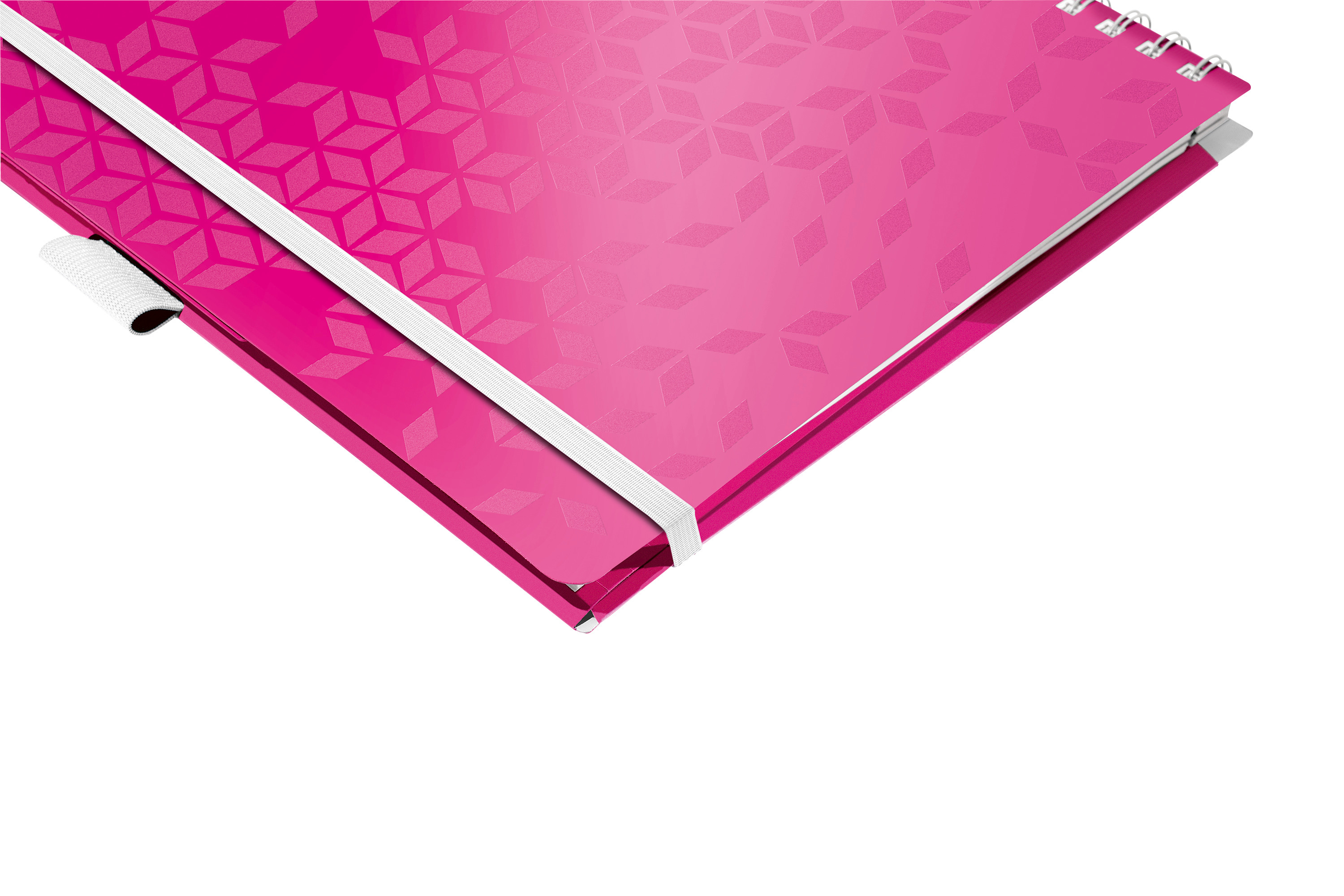 Die perfekte Kombination aus Design und Funktionalität für unterwegs. Collegeblock mit 3 Klappen am Rückdeckel für die Ablage loser Blätter. Brillante WOW Farben und stylische geometrische Prägung des Einbands.