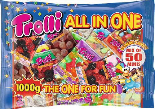 Trolli All in one - wie der Name euch schon verrät, steckt hier alles in einem grossen Beutel. Das ist der grosse Traum aller, die von den abgefahrenen bunten Fruchtgummis nicht genug bekommen können.