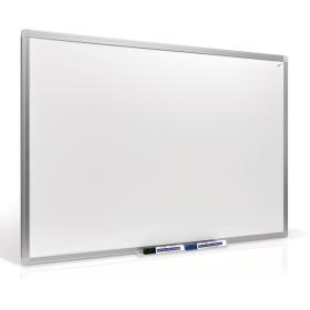 Modernes Whiteboard in schlichtem, elegantem Design. Magnethaftend, mit Boardmarkern beschreibbar und trocken oder feucht abwischbar. Mit eloxiertem Aluminium-Rahmen und abgerundeten Kunststoffecken mit Abdeckkappen zur verdeckten Wandmontage. Mit rückseitiger Metallkaschierung für mehr Stabilität.