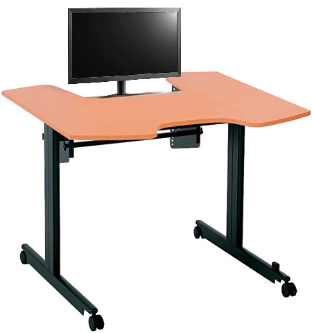 • Die geformte Tischplatte mit Unterarmstützen auf beiden Seiten ist stufenlos höhenverstellbar von 72 - 115 cm und eignet sich speziell für die stehende Arbeitshaltung.