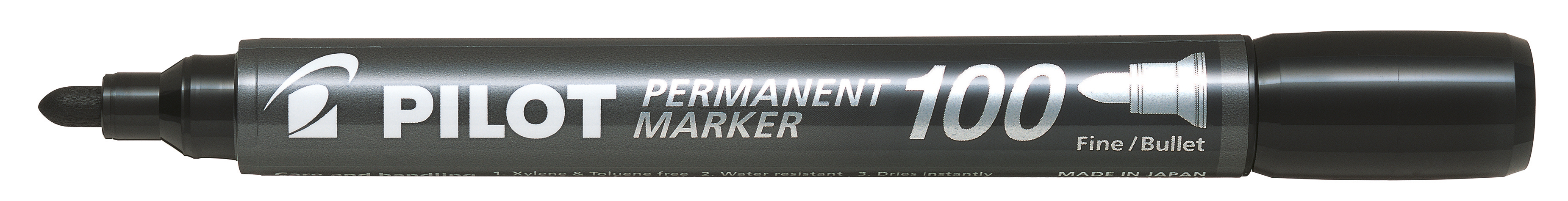 Der Permanent Marker 100 ist ein Marker mit Rundspitze und ohne Lösungsmittel. Er ermöglicht Ihnen, auf fast allen Oberflächen zu schreiben. Selbst ohne Deckel trocknet der Marker bis zu 24 Stunden lang nicht aus.