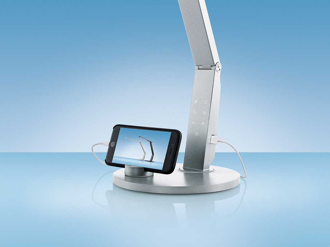 Bei dieser modernen und multifunktionellen LED Leuchte von Hansa ist die Lichtintensität stufenlos dimmbar. Es sind vier verschiedene Stufen der Farbtemperatur vorhanden, welche zwischen 2700 – 6400 Kelvin wählbar sind. Ausserdem eignet sich der integrierte USB-Anschluss (5V 1.2A) zum Aufladen aller Arten von mobilen Geräten. Der im Lieferumfang enthaltene magnetischer Mobilgeräte-Halter kann bei Bedarf an Fuss befestigt werden.