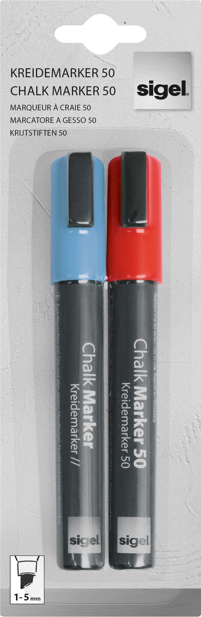 Die Kreidemarker mit besonders hoher Deckkraft sind für die Anwendung auf glattem Glas und fast allen geschlossenen Oberflächen geeignet. Die Flüssigkreide auf Wasserbasis kann trocken und feucht abgewischt werden.
