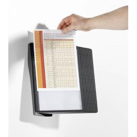Wandhalter mit 10 SHERPA PANEL Sichttafeln im Format A4 für Preis- und Telefonlisten, Katalogseiten, Fotos etc., die reflexionsarmen Tafeln, sind dokumentenecht und scannertauglich, inkl. Reitern mit blanko Einsteckschildern. Einfache Befestigung. 5 Jahre Garantie.