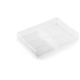 Der glasklare Schubladeneinsatz für die COFFEE POINT Catering Box eignet sich optimal für die Sortierung und Aufbewahrung von Besteck und sonstigem Zubehör von Kaffeestationen. Die stapelbare Ablage ist lebensmittelecht und leicht zu reinigen.