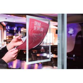 Ihre Infos perfekt in Szene gesetzt. Der adhäsiv haftende Info-Rahmen DURAFRAME SUN eignet sich für Aushänge auf Glasflächen mit direkter Sonneneinstrahlung. Informationen hochwertig und professionell präsentieren. Schnelles Einlegen und Auswechseln von Dokumenten durch aufklappbaren Magnetrahmen. Durch Adhäsion haftend, speziell für den Einsatz an Schaufensterscheiben innen, die direkter Sonneneinstrahlung ausgesetzt sind. Für Dokumente wie z. B. Ladenöffnungszeiten und Angebote im Schaufenster