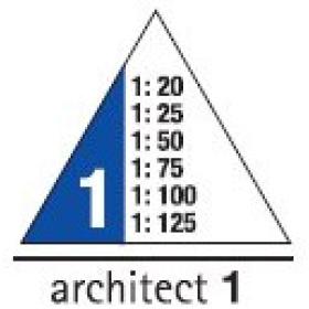 Präzisions-Dreikantmassstab aus Aluminium in transparentem PP-Etui, drei farbige Hohlkehlen, Präzisionsteilungen, markante Vorbezifferung.