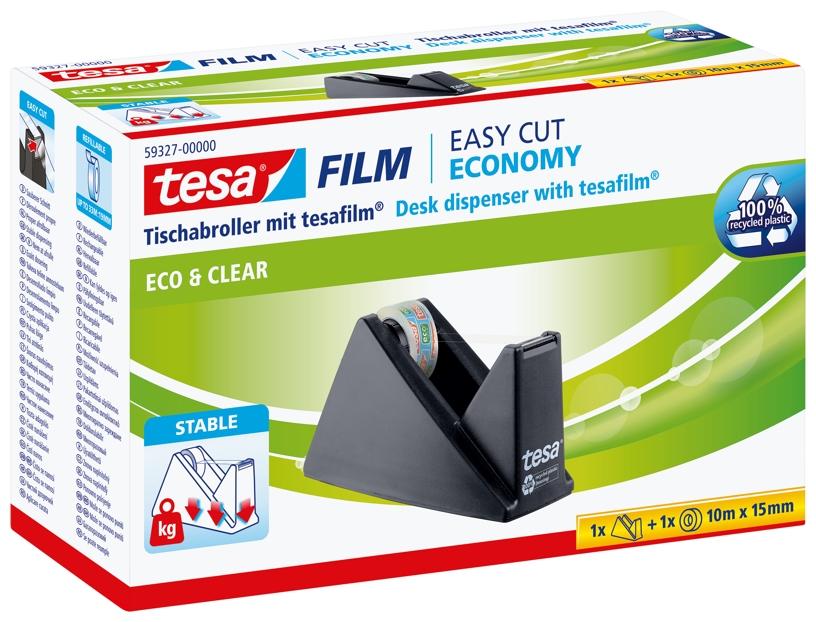 Der Klebebandabroller ECO & CLEAR von tesa garantiert dennoch einen sicheren Halt auf Ihrem Schreibtisch oder Basteltisch. kombiniert mit dem scharfen Wellenmesser für einen sauberen Schnitt, lässt sich der formschöne Klebebandabroller mit einer Hand und ohne Verrutschen bedienen.