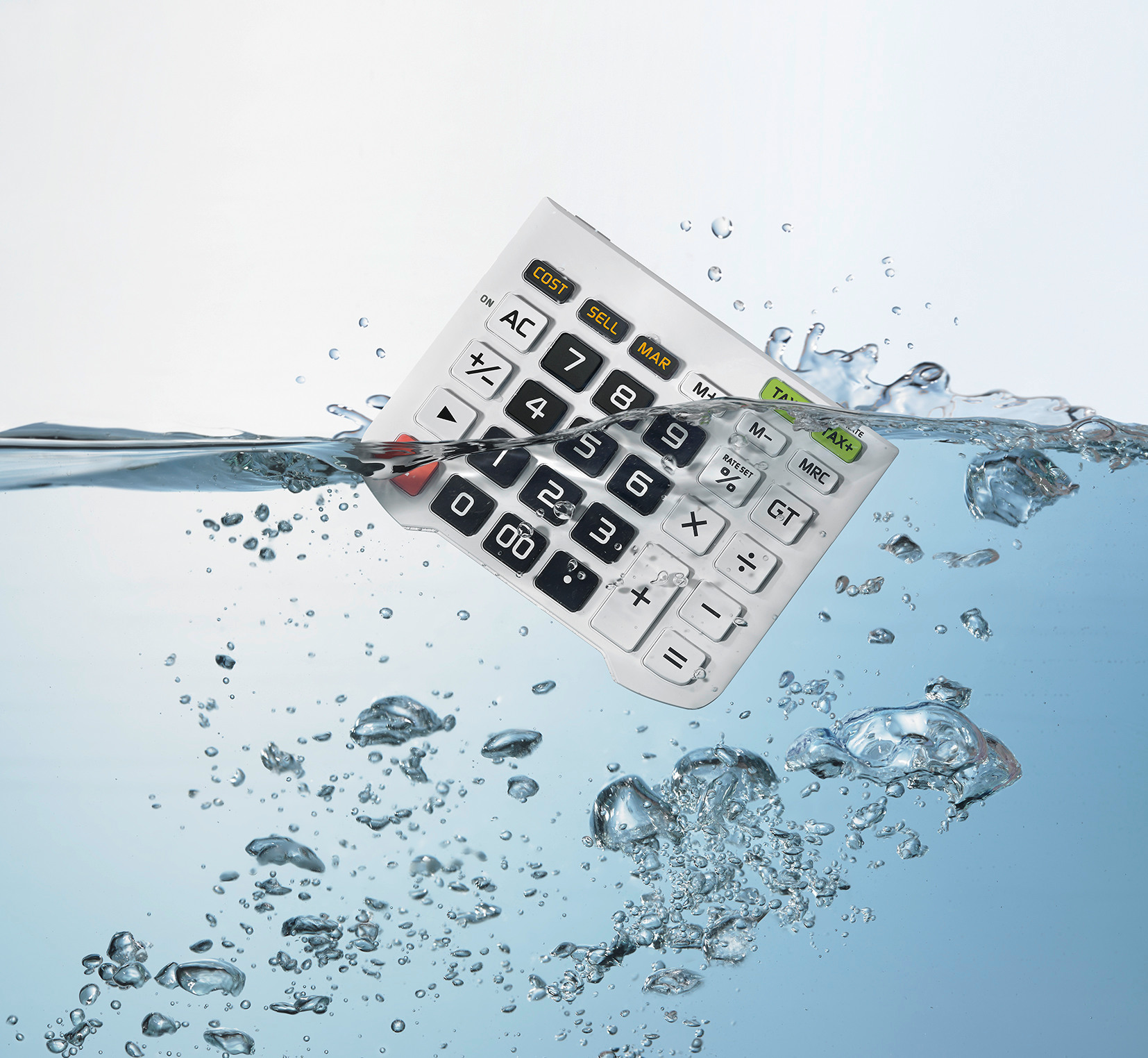 Der spritzwasser- und staubgeschützte Tischrechner hat ein abnehmbares, abwaschbares Tastenfeld und eignet sich unter anderem für Profitberechnungen, Prozentrechnungen und MwSt.-Berechnung.
