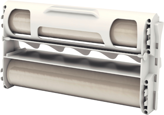 Das patentierte Kassettensystem ermöglicht einen einfachen Austausch der Kaltlaminierfolienrollen.