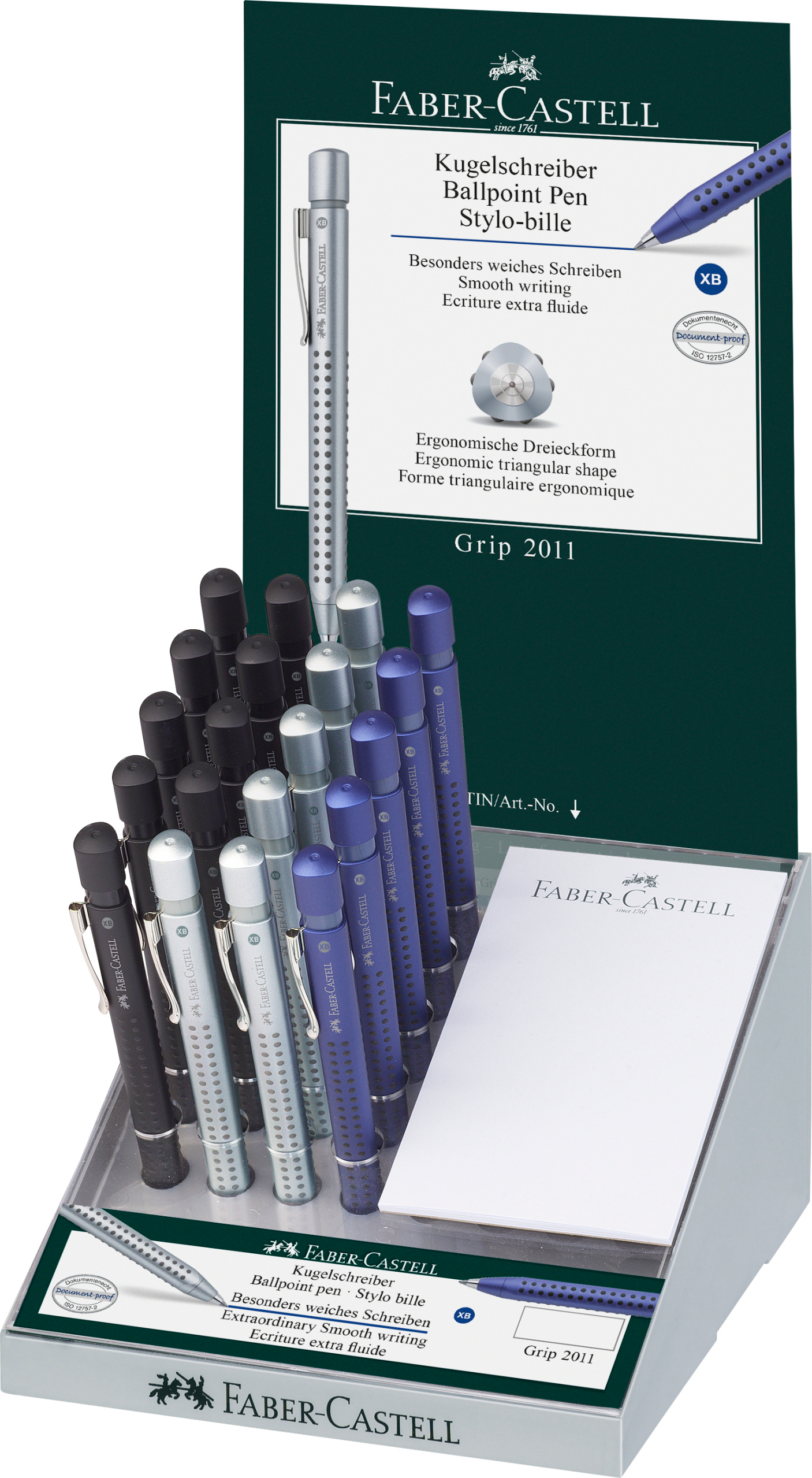 Die Kugelschreiber und Druckbleistifte GRIP 2011 überzeugen vor allem Vielschreiber, denn die ergonomische Dreikantform und das ideale Gewicht ermöglichen langes, ermüdungsfreies Schreiben. Auch in puncto Design überzeugen sie auf der ganzen Linie: Die charakteristischen Noppen der rutschsichern Griffzone kommen farblich passend zum Schaft zur Geltung.