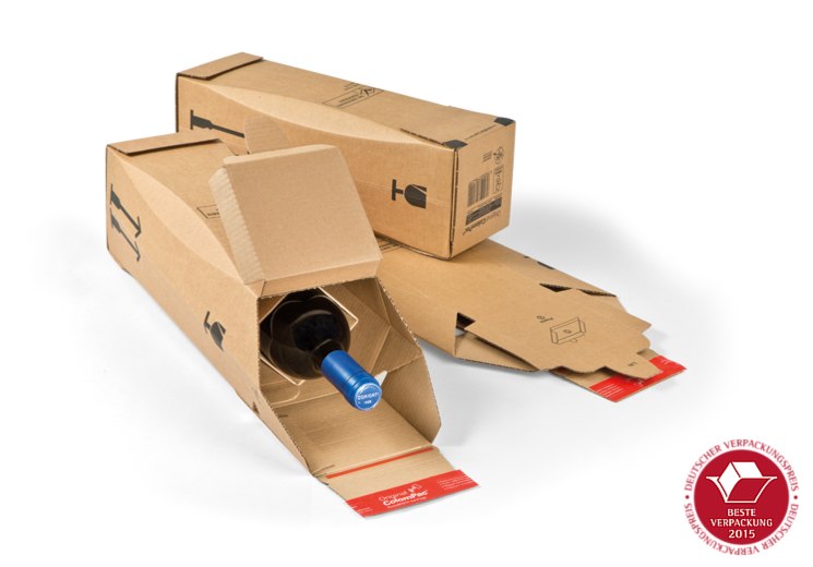Glasklar und sicher - der DHL zertifizierte Flaschenkarton, geeignet für den sicheren Versand von 0,75l Weinflaschen. Der Karton ist einfach und schnell aufgebaut und der COLOMPAC Selbstklebeverschluss an Boden und Deckel spart Zeit und zusätzliche Verschlussmittel.