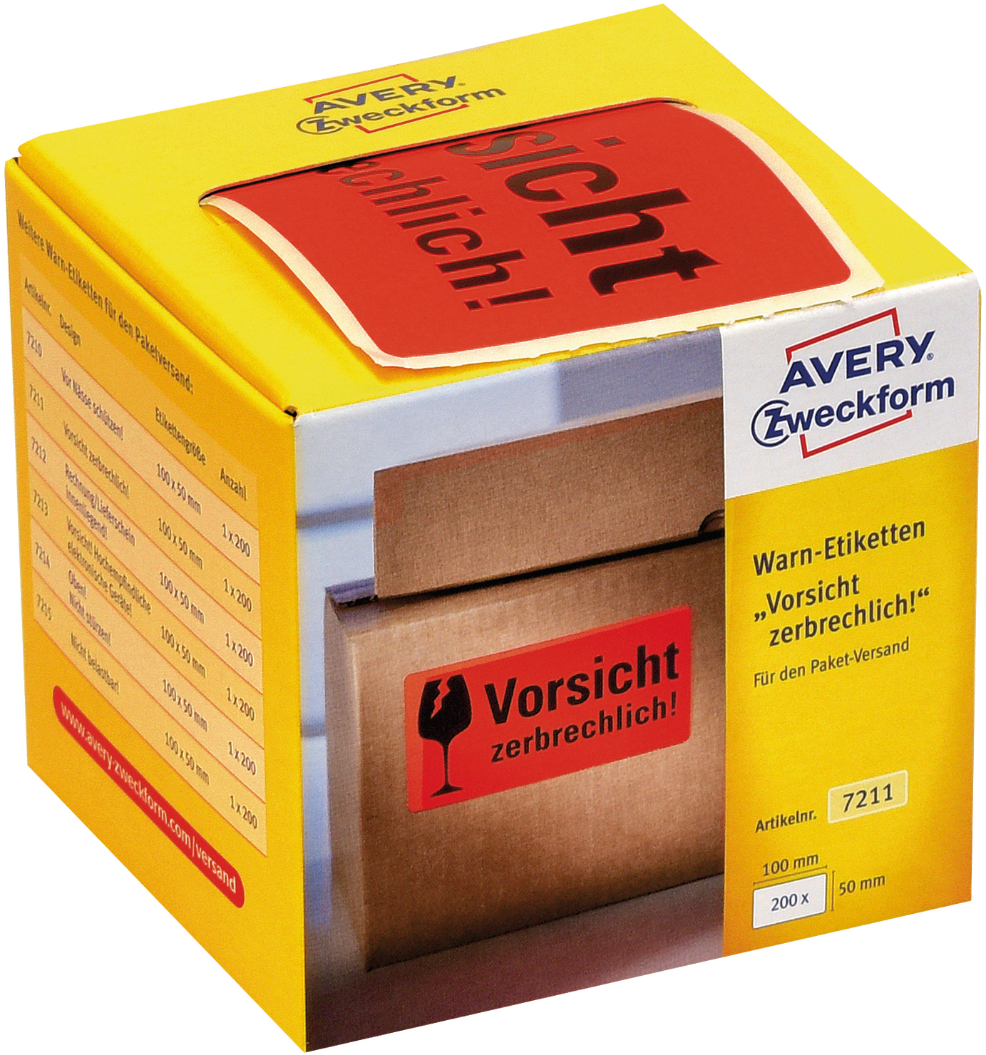 Die vorgedruckten Warnetiketten mit Warnhinweis im Format 100 x 50 mm von AVERY ZWECKFORM sind perfekt zum Beschriften von Päckchen und Paketen. Die neonroten Warnetiketten haben eine besonders starke Leuchtkraft und fallen sofort auf. Durch den speziell entwickelten Klebstoff haften die Warnaufkleber sicher und zuverlässig auf allen gängigen Verpackungsmaterialien.