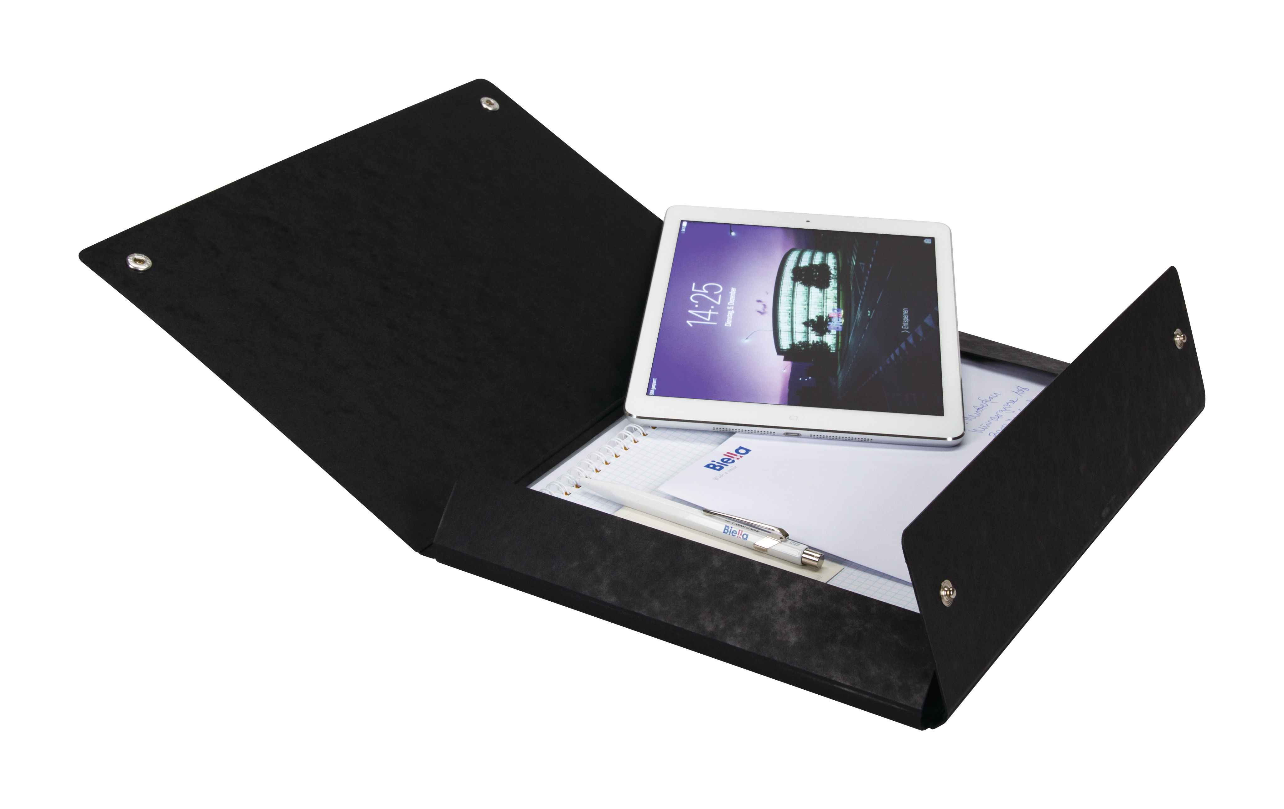 Die schlanke Dokumentenmappe TopColor von Biella mit elegantem Druckknopf-Verschluss bietet viel Platz für Ihre Unterlagen. Nicht nur Ihre Unterlagen können Sie in die Mappe verstauen, sondern auch Ihre Schreibsachen, Notizblöcke, Projektdossiers, Ihr Tablet und vieles mehr.