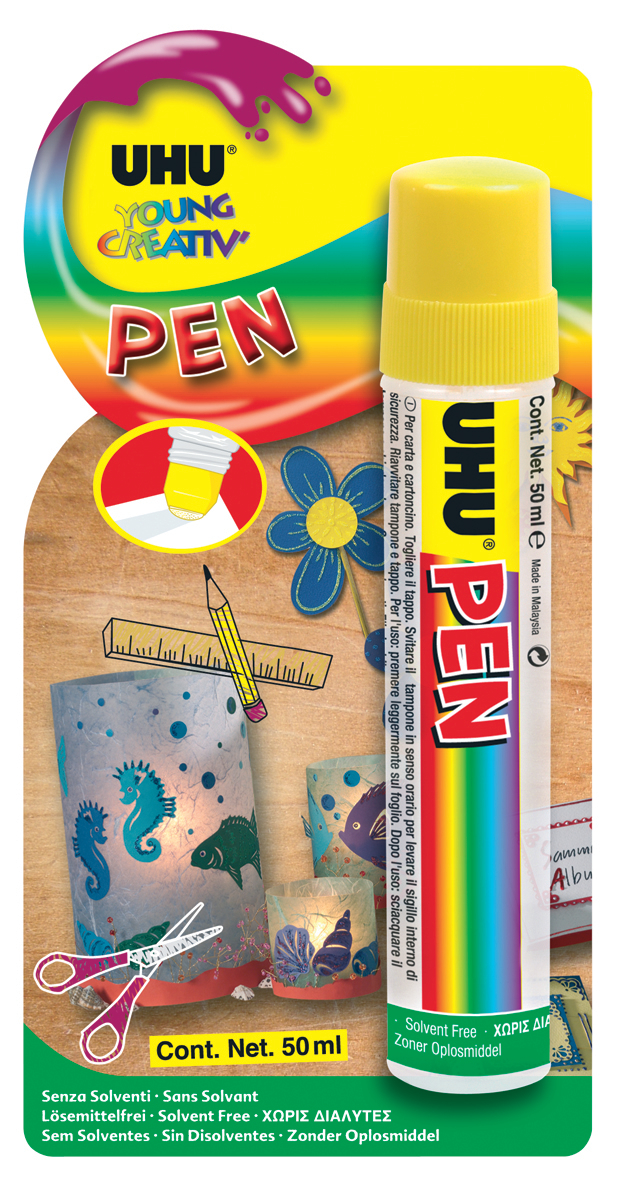Der UHU YOUNG&CREATIVE-Klebestift eignet sich mit seinem einfach verwendbaren Verstreichkopf ideal für sparsame Klebeaufträge.