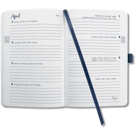Der Wochenkalender Jolie im Hardcover-Einband aus weichem PU-Material mit geprägtem Design enthält 174 Seiten, inklusive Notizseiten (12 Blatt perforiert zum Heraustrennen). Das Kalendarium zeigt je eine Woche auf einer Doppelseite. Zusätzlich enthält der Kalender umfangreiche Infoseiten, z. B. Monats- und Jahresübersichten, internationale Kleidergrössen, Stunden- und Familienplaner, Platz für Adressen, Feiertage, Ferienübersichten u.v.m. Jetzt mit Stickerbogen zum Organiseren & Individualisieren. Ein Monatsregister am Seitenrand ermöglicht das schnelle Auffinden der Monate. Der Kalender hat einen farblich abgestimmten Gummibandverschluss und ist mit Stiftschlaufe, einem Leseband und einer Einstecktasche ausgestattet.