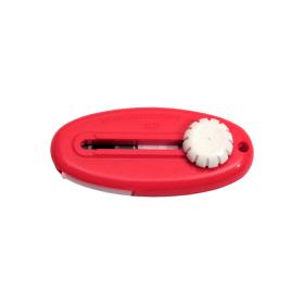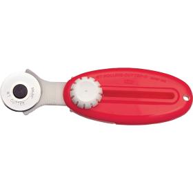 Der handliche Rollenschneider kann für gerade und gekrümmte Linien verwendet werden. Das Messer wird aus dem Schaft ausgefahren und lässt sich in ausgefahrener Position mittels Feststellschraube fixieren.