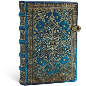 Das Paperblanks Notizbuch Equinoxe Azurblau reproduziert den Einband von L’office de la Semaine Sainte aus dem Jahr 1688, der im „Fanfarenstil“ mit einem handgearbeiteten Muster mit Goldrand verziert war. Der Stil „à la fanfare“ war vor allem im 17. Jahrhundert beliebt, verlangte dem Buchbinder eine hohe Fertigkeit ab und wurde nur für äusserst wichtige Bücher verwendet.
