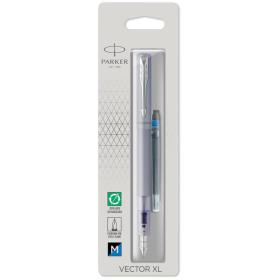 Die satinierte Metallic-Oberflächen wird durch verchromte Zierteile und den charakteristischen PARKER-Pfeilclip ergänzt. Mit einer einzigartigen farbigen, transparenten Griffzone, die das Innenleben des Schreibgerätes offenbart. Die langlebige, grosse Edelstahlfeder des Füllfederhalters sorgt für ein komfortables und gleichmässiges Schreibgefühl.