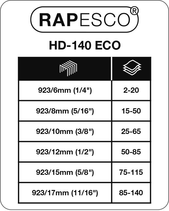 Das ECO HD-140 Blockheftgerät kann problemlos bis zu 140 Blatt (80g/m²) heften. Dieses leistungsstarke Heftgerät hat eine attraktive soft weisse Farbe und wurde mit einem hohen Anteil an recyceltem Kunststoff hergestellt. Neben einer Frontlademechanik per Knopfdruck bietet dieses Heftgerät ausserdem einen weichen Gummihebelgriff für Benutzerkomfort und Gummifüsse für eine verstärkte Stabilität – besonders hilfreich beim Heften grösserer Mengen. Das Heftgerät hat einrastende Papierführung und ist mit 25 Jahren Garantie gesichert.