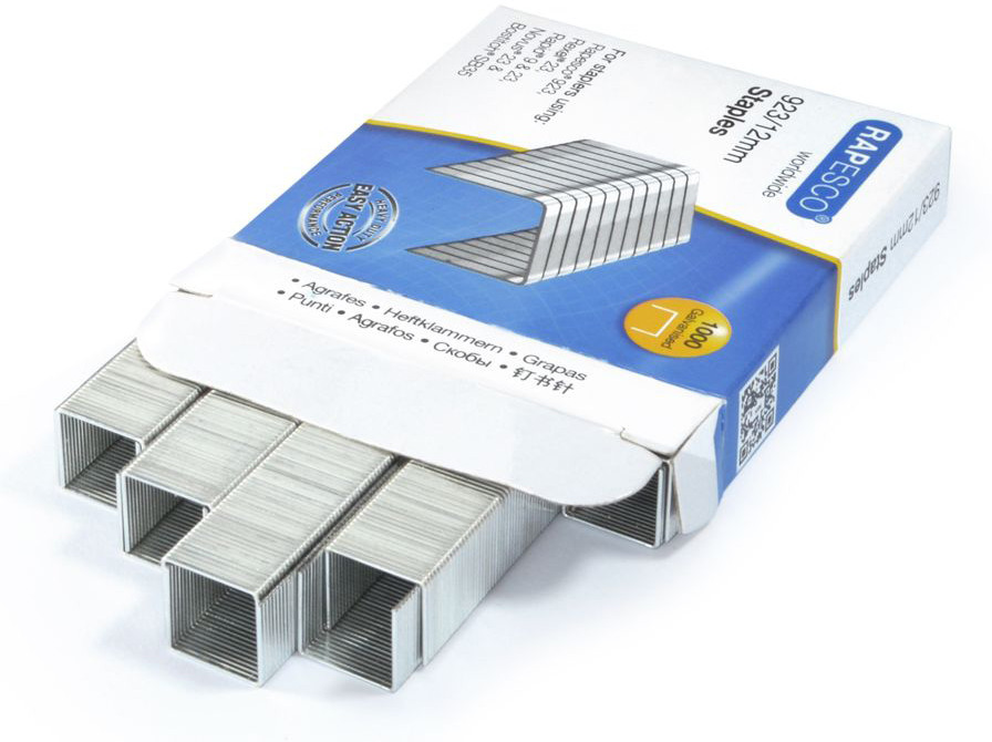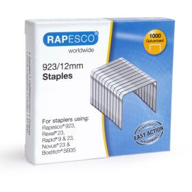 Hochqualitative 12mm verzinkte Heftklammern für Rapesco Extrastarke Heftgeräte, die Typ 923 Heftklammern benutzen. Auch kompatibel für den Gebrauch im Swingline Heavy Duty, Rapid Typ 9, Rexel Typ 23 und Typ 66 und Novus Typ 23 Heftgeräte. Passen auch in 5 Star und Q-Connect Heftgeräte. Packung mit 1.000 verzinkten Heftklammern mit einer Beinlänge von 12mm. Auch erhältlich in 6mm, 8mm, 10mm, 15mm, 17mm, 20mm und 23mm.