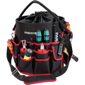 Kompakter Ordnungshüter mit extrem grossem Fassungsvermögen. Er fasst rund 51 Werkzeuge. 12 innenliegende Einsteckfächer, ein grosszügiges Hauptfach, ein separates Fach für einen Akkuschrauber inklusive Steckverschluss sowie 37 aussenliegende Einsteckfächer als auch weitere separate Fächer für Kleinteile oder Smartphone ermöglichen die sichere, ordentliche Aufnahme so vieler Arbeitsutensilien. Dank des geringen Eigengewichtes und des praktischen Trage-/Schultergurtes, lässt sich der PARAT BASIC Bucket selbst in befülltem Zustand komfortabel transportieren. Verarbeitung qualitativ hochwertiger Materialien mit Langlebigkeit und enormer Tragfähigkeit und der unvergleichbaren PARAT Qualität.