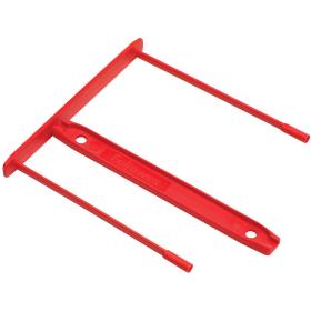 Zweiteiliger Plastikclip mit verlängerten Aufreihstiften, inklusive Bügel zur einfachen Entnahme der Dokumente aus Ordnern.