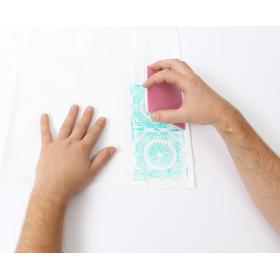 Set bestehend aus: 1 Platte rechteckig 10 x 15 x 0.8 cm, 3 runden Platten ø 5 x 0.8 cm und 2 Schnitzmessern (1 breite + 1 schmale Klinge) • beidseitig bearbeitbar • das flexible und weiche Material eignet sich hervorragend für unebene Untergründe und ist einfach zu bearbeiten • kann mit Normal-, Textil- und Chalk-Inkpads verwendet werden