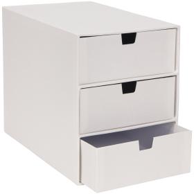 Die elegante Schubladenbox Ingrid ist aus Karton gefertigt und verfügt über 3 geschlossene Schubladen. Das Schubladenelement ist stapelbar und bestens für die Ablage von Notizen und anderen Utensilien geeignet. Das optisch sehr ansprechende Ablagesystem ist im Büro sowie privat optimal einsetzbar und kann überall platziert werden.