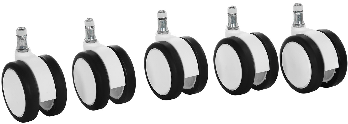 Die hochwertigen, weissen Hartbodenrollen sind gebremst und eignen sich für harte Fussböden wie Parkett, Laminat, Fliesen oder Steinböden. Die Doppelrollen mit einem Durchmesser von 60 mm (Stiftdurchmesser: 11 mm) sind aus Kunststoff/Gummi gefertigt. Passend zu Topstar-Modellen: Sitness Life 40